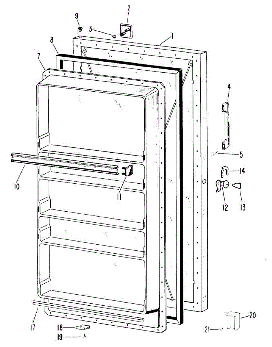 Hardware fasteners for securing refrigerator door panels and components. Includes screws, nuts, and washers for assembly. Replace missing or stripped pieces.