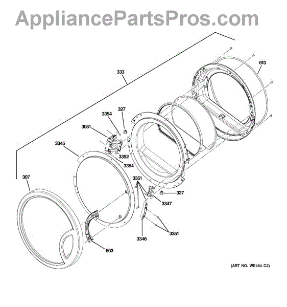 Outer glass window panel for dryer door. Replaces broken, cracked, or shattered glass. Installs on the exterior side of the door assembly.