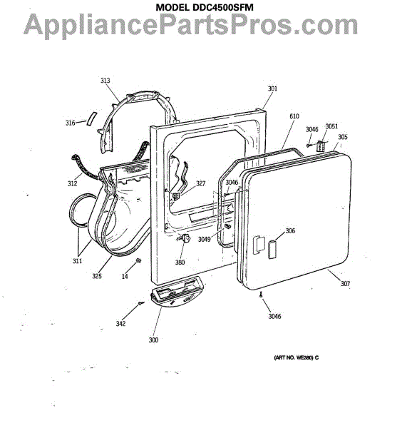 The Handle Door is an OEM part for GE dryers. This door handle allows for easy opening and closing of the dryer door, providing a secure grip to access the drum.