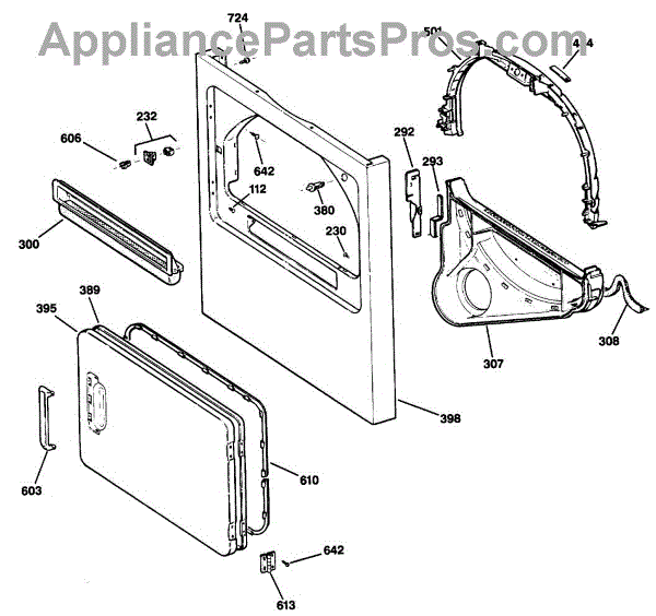 The Door Latch is an OEM part for GE dryers. This part ensures the dryer door stays securely closed during operation, activating the safety switch to allow the dryer to operate. The latch mechanism engages with the door strike to lock the door, preventing it from opening while the dryer is running, which is essential for both safety and proper functioning of the appliance.