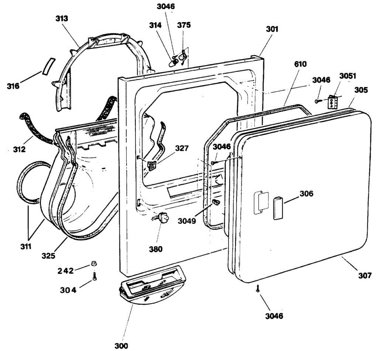The Handle Door is an OEM part for GE dryers. This door handle allows for easy opening and closing of the dryer door, providing a secure grip to access the drum.