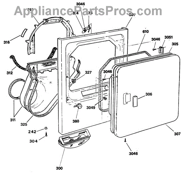 The Handle Door is an OEM part for GE dryers. This door handle allows for easy opening and closing of the dryer door, providing a secure grip to access the drum.