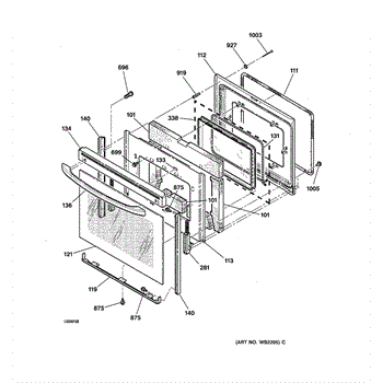 The Oven Door Window Pack Assembly is an OEM part for GE ovens. This assembly includes the glass window and necessary components to ensure a clear view into the oven while maintaining the internal temperature and providing insulation. The glass measures 19" x 12".