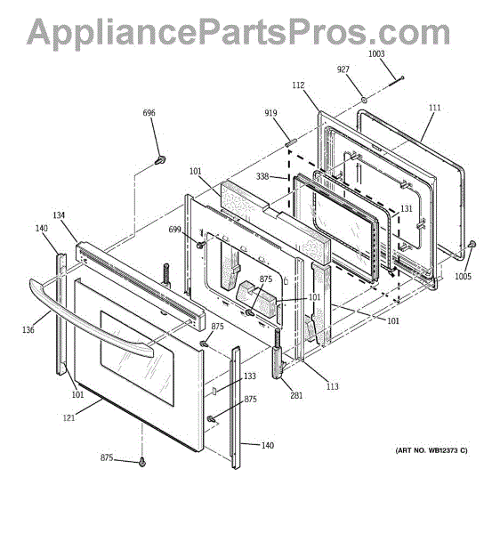 The Oven Door Window Pack Assembly is an OEM part for GE ovens. This assembly includes the glass window and necessary components to ensure a clear view into the oven while maintaining the internal temperature and providing insulation. The glass measures 19" x 12".