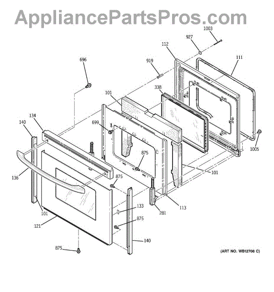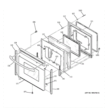 The Oven Door Window Pack Assembly is an OEM part for GE ovens. This assembly includes the glass window and necessary components to ensure a clear view into the oven while maintaining the internal temperature and providing insulation. The glass measures 19" x 12".
