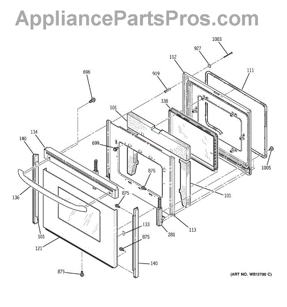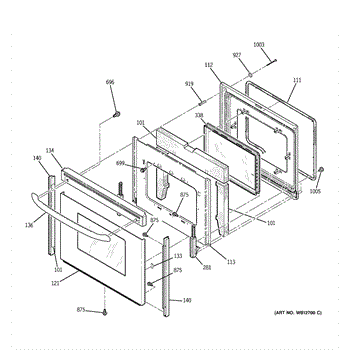 The Oven Door Window Pack Assembly is an OEM part for GE ovens. This assembly includes the glass window and necessary components to ensure a clear view into the oven while maintaining the internal temperature and providing insulation. The glass measures 19" x 12".