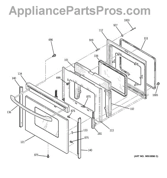 The Oven Door Window Pack Assembly is an OEM part for GE ovens. This assembly includes the glass window and necessary components to ensure a clear view into the oven while maintaining the internal temperature and providing insulation. The glass measures 19" x 12".