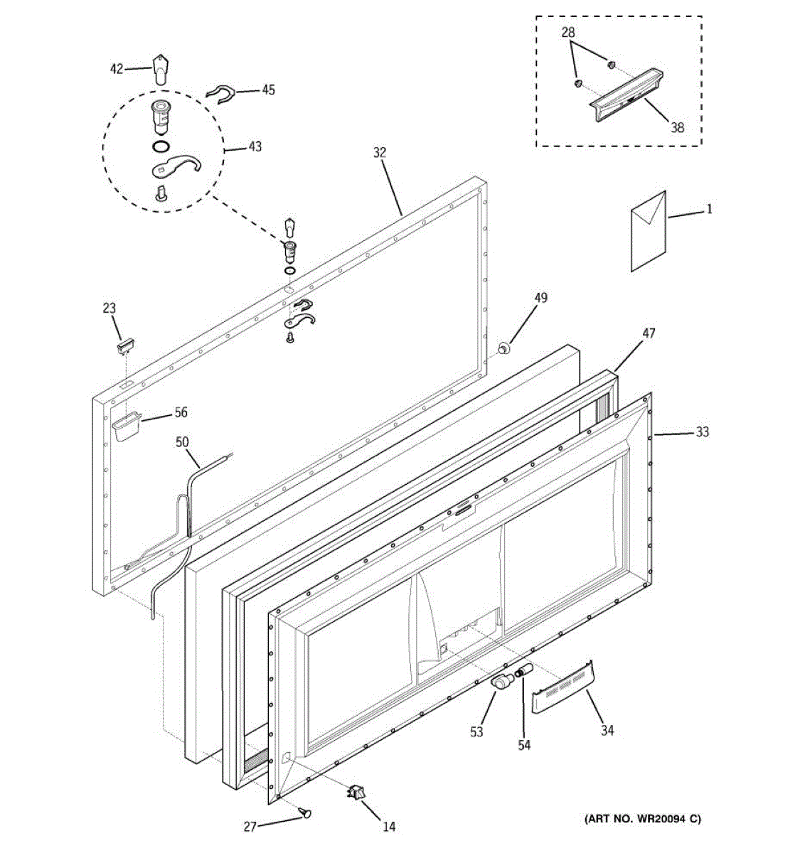 Inner door panel for freezer. Replaces cracked, warped, or damaged original liner. Attaches to interior side of freezer door for clean appearance.