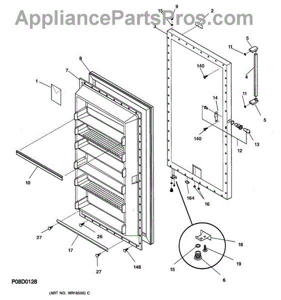 Parts for Ge FUF14DABRWH: 01 - Door Parts