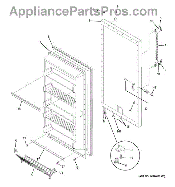 This inner door panel replaces a damaged or worn freezer interior surface to restore proper bin mounting and appearance. It provides the structural backing for door shelves and helps maintain a tight interior arrangement. What it does: