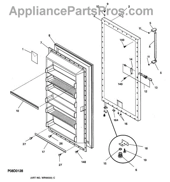 Parts for Ge FUF20DABRWH: 01 - Door Parts