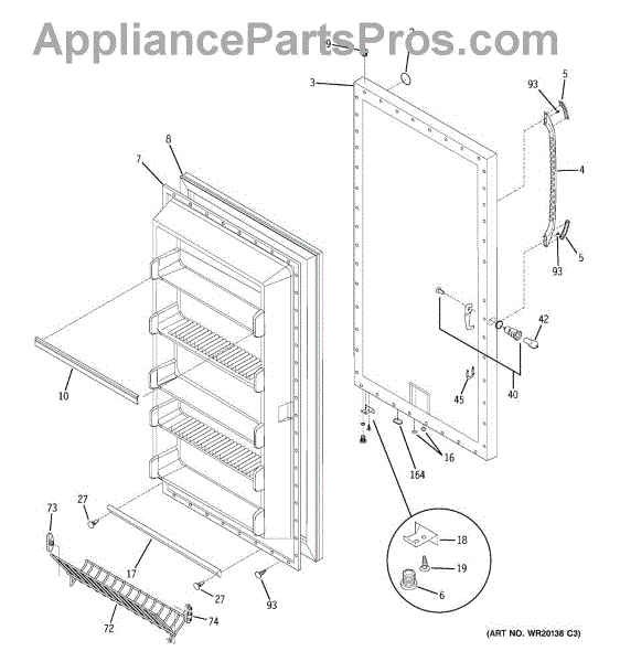 Parts for Ge FUF20SUDRWW: 01 - Door Parts