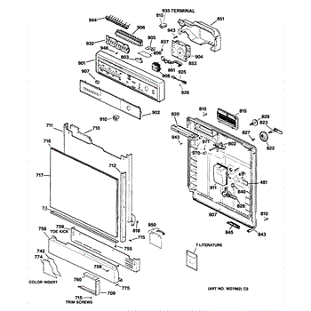 The Fill Cap Assembly is an OEM part for GE dishwashers. This assembly includes the cap that covers the opening where rinse aid or other additives are poured into the dishwasher. It ensures that the additives are securely contained and properly dispensed during the wash cycles, contributing to effective cleaning and drying.
