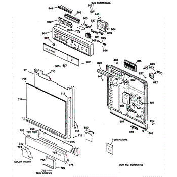 The Detergent cup cover is an OEM component for GE dishwashers. It serves to protect the detergent cup assembly while allowing for easy access. Made of durable plastic, the cover clicks securely into place during operation to prevent accidental opening.