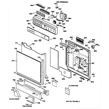 The Detergent cup cover is an OEM component for GE dishwashers. It serves to protect the detergent cup assembly while allowing for easy access. Made of durable plastic, the cover clicks securely into place during operation to prevent accidental opening.