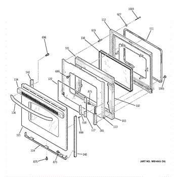 Inner oven door glass installs inside the door cavity behind the outer panel. Replace if shattered, cracked, or broken to restore viewing window function.