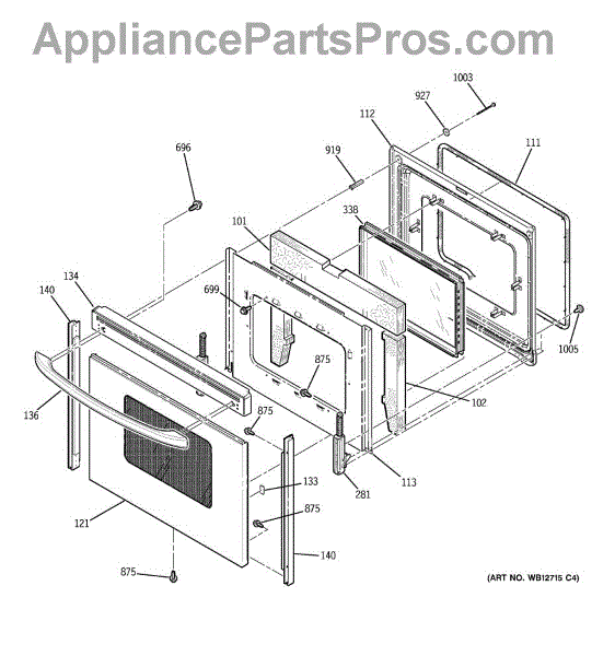 The Oven Door Window Pack Assembly is an OEM part for GE ovens. This assembly includes the glass window and necessary components to ensure a clear view into the oven while maintaining the internal temperature and providing insulation. The glass measures 19" x 12".