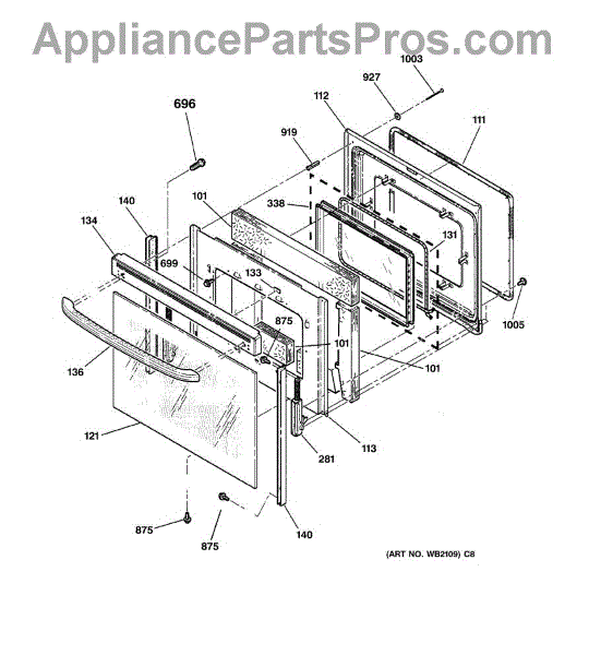 The Oven Door Window Pack Assembly is an OEM part for GE ovens. This assembly includes the glass window and necessary components to ensure a clear view into the oven while maintaining the internal temperature and providing insulation. The glass measures 19" x 12".