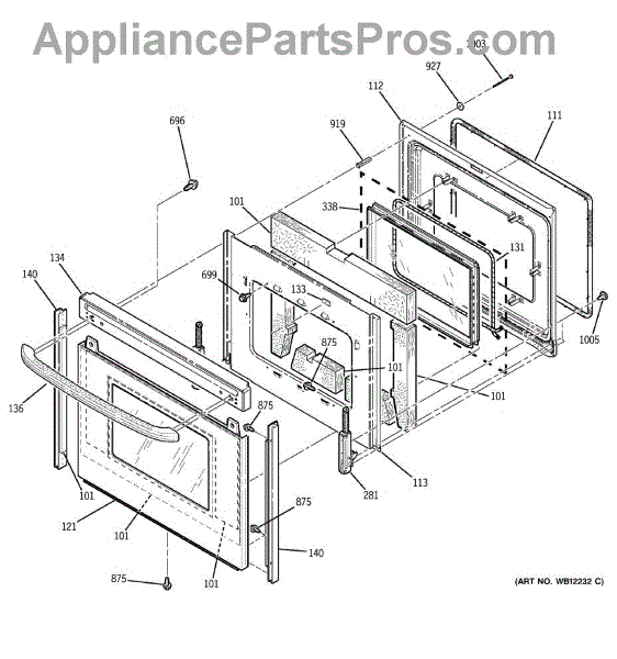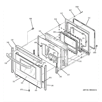 The Oven Door Window Pack Assembly is an OEM part for GE ovens. This assembly includes the glass window and necessary components to ensure a clear view into the oven while maintaining the internal temperature and providing insulation. The glass measures 19" x 12".