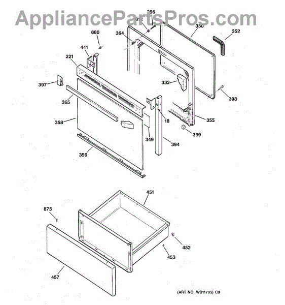 The Handle is an OEM part for GE ovens and ranges. It serves as the primary means of opening and closing the oven door, allowing you to access the interior for cooking, cleaning, or maintenance purposes. Order 2 of part number AP3623187 for the end caps.