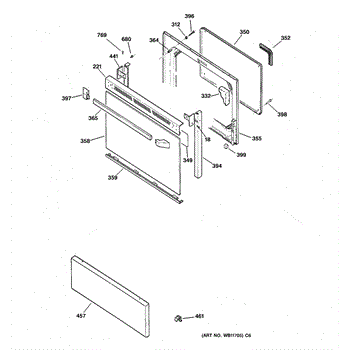 The Bottom Door Trim (BLK) is an OEM part for GE ranges. This black trim piece is located at the bottom of the oven door, providing a finished look while also protecting the door's edge from damage and wear.
