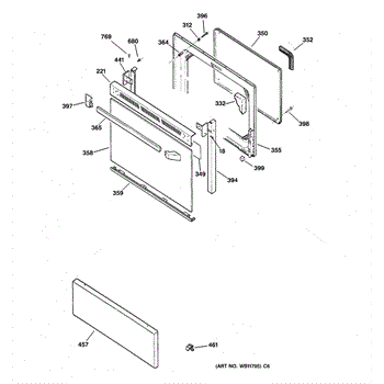 The Bottom Door Trim (BLK) is an OEM part for GE ranges. This black trim piece is located at the bottom of the oven door, providing a finished look while also protecting the door's edge from damage and wear.