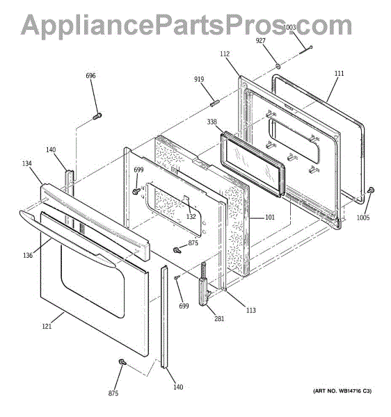 The Oven Window Pack Assembly is an OEM replacement part for GE electric ranges. It provides a safe, transparent barrier for viewing cooking progress inside the oven cavity. The glass measures 17 x 7 inches. Causes for needing replacement include cracks or chips developing over time due to consistent thermal expansion and contraction during cooking cycles. Surface scratches from harsh or abrasive cleaners are another culprit. Symptoms of a faulty window pack include: