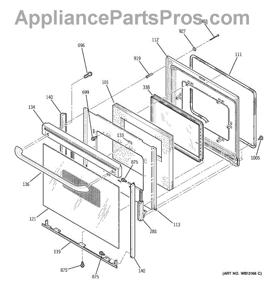 The Oven Window Pack Assembly is an OEM replacement part for GE electric ranges. It provides a safe, transparent barrier for viewing cooking progress inside the oven cavity. The glass measures 17 x 7 inches. Causes for needing replacement include cracks or chips developing over time due to consistent thermal expansion and contraction during cooking cycles. Surface scratches from harsh or abrasive cleaners are another culprit. Symptoms of a faulty window pack include: