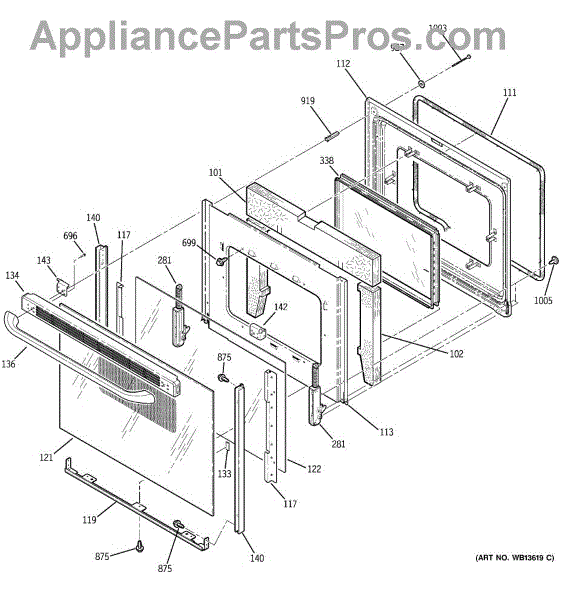 The Window Pack Assembly is an OEM replacement part for GE electric ranges. It comprises the outer oven window and securing brackets that hold the glass in place. Causes of failure can include cracks in the glass from impact or thermal stress over time. Mounting brackets may loosen from normal use. Symptoms of a faulty window pack assembly include: