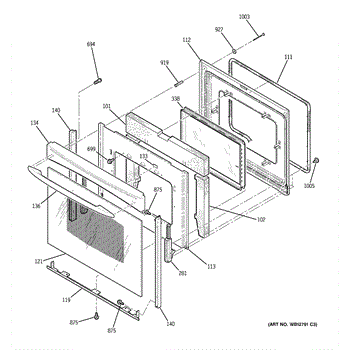 The Oven Door Window Pack Assembly is an OEM part for GE ovens. This assembly includes the glass window and necessary components to ensure a clear view into the oven while maintaining the internal temperature and providing insulation. The glass measures 19" x 12".
