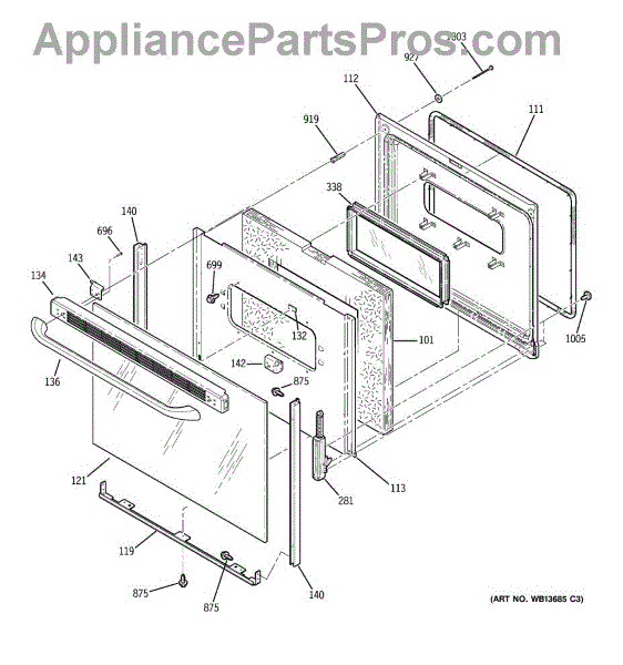 Parts for Ge JBP62DM5WW: 04 - Door Parts