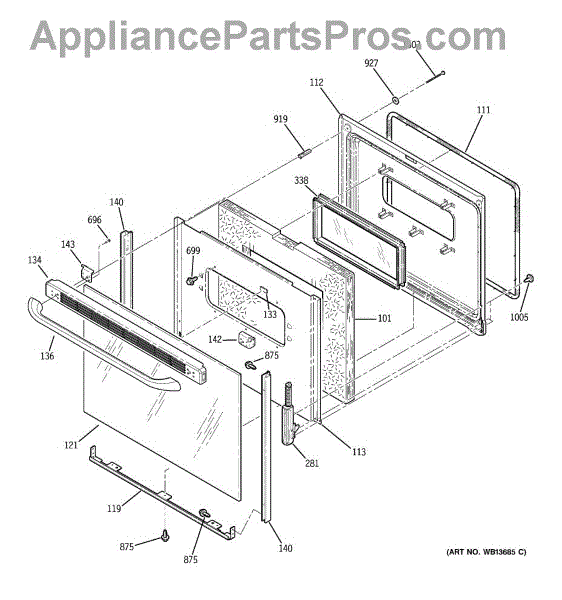 The Oven Window Pack Assembly is an OEM replacement part for GE electric ranges. It provides a safe, transparent barrier for viewing cooking progress inside the oven cavity. The glass measures 17 x 7 inches. Causes for needing replacement include cracks or chips developing over time due to consistent thermal expansion and contraction during cooking cycles. Surface scratches from harsh or abrasive cleaners are another culprit. Symptoms of a faulty window pack include:
