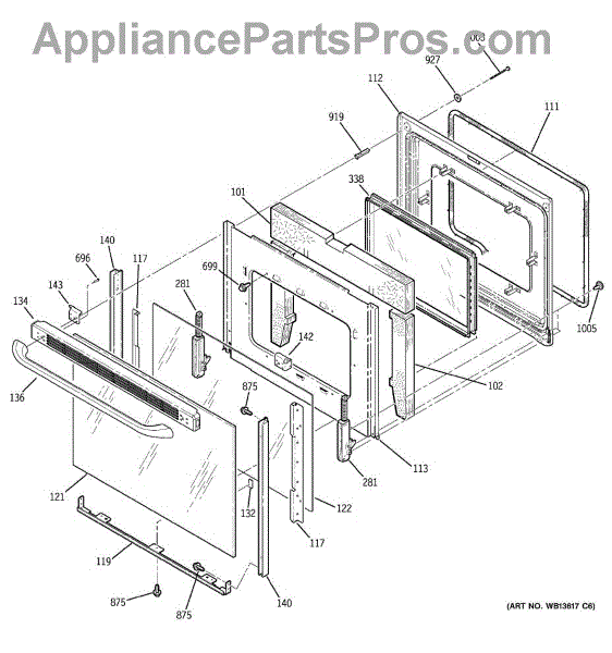 The Window Pack Assembly is an OEM replacement part for GE electric ranges. It comprises the outer oven window and securing brackets that hold the glass in place. Causes of failure can include cracks in the glass from impact or thermal stress over time. Mounting brackets may loosen from normal use. Symptoms of a faulty window pack assembly include: