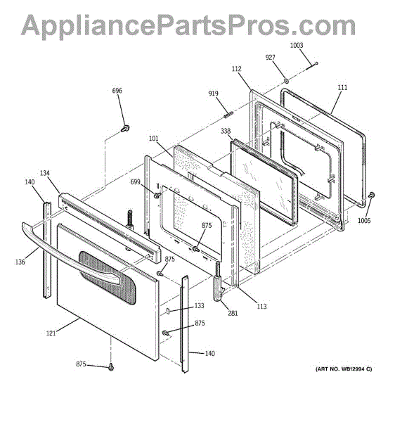 The Oven Window Pack Assembly is an OEM replacement part for GE electric ranges. It provides a safe, transparent barrier for viewing cooking progress inside the oven cavity. The glass measures 17 x 7 inches. Causes for needing replacement include cracks or chips developing over time due to consistent thermal expansion and contraction during cooking cycles. Surface scratches from harsh or abrasive cleaners are another culprit. Symptoms of a faulty window pack include: