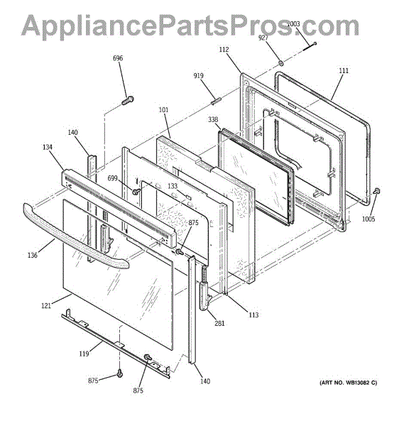 Parts for Ge JBP67WH3WW: 04 - Door Parts