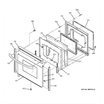 The Oven Door Window Pack Assembly is an OEM part for GE ovens. This assembly includes the glass window and necessary components to ensure a clear view into the oven while maintaining the internal temperature and providing insulation. The glass measures 19" x 12".