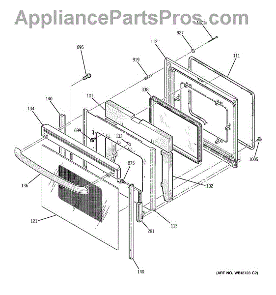 The Oven Door Window Pack Assembly is an OEM part for GE ovens. This assembly includes the glass window and necessary components to ensure a clear view into the oven while maintaining the internal temperature and providing insulation. The glass measures 19" x 12".