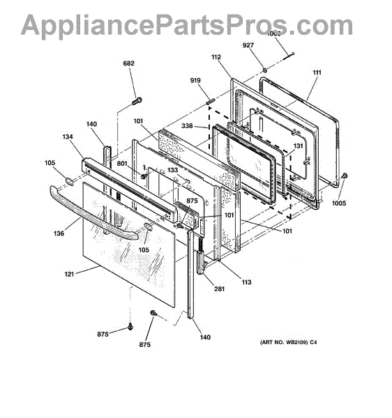 The Oven Door Window Pack Assembly is an OEM part for GE ovens. This assembly includes the glass window and necessary components to ensure a clear view into the oven while maintaining the internal temperature and providing insulation. The glass measures 19" x 12".