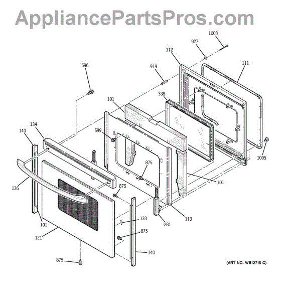 The Oven Door Window Pack Assembly is an OEM part for GE ovens. This assembly includes the glass window and necessary components to ensure a clear view into the oven while maintaining the internal temperature and providing insulation. The glass measures 19" x 12".