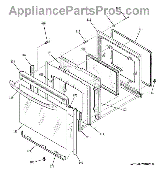 Parts for Ge JBP83GH2WW: 04 - Door Parts