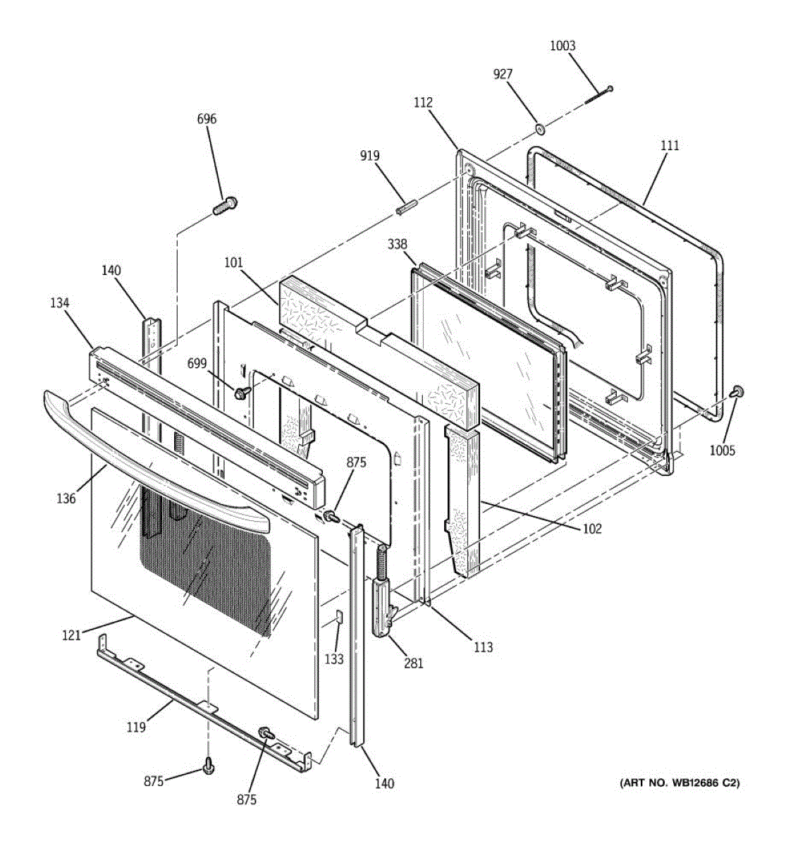 Parts for Ge JBP84BH2BB: 04 - Door Parts