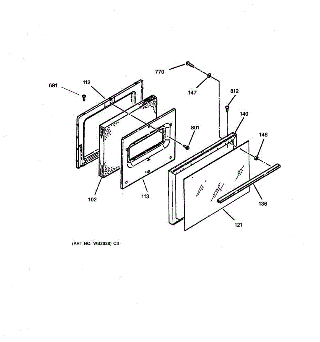GE oven door glass, outer, black.