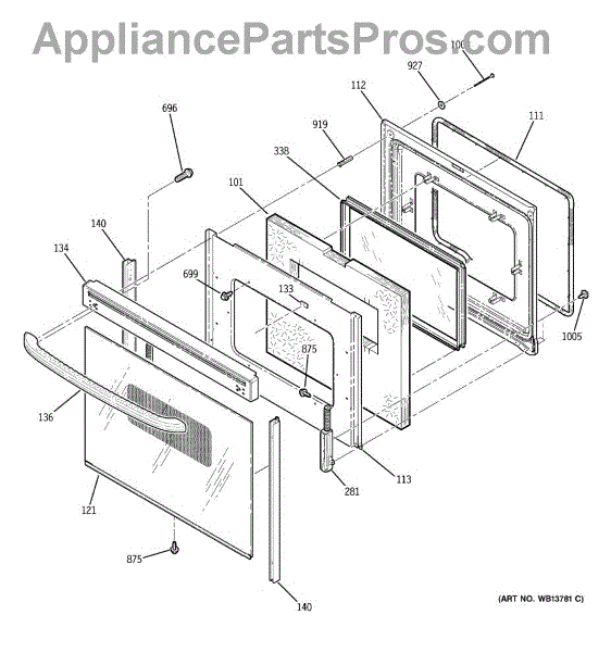 The Oven Window Pack Assembly is an OEM replacement part for GE electric ranges. It provides a safe, transparent barrier for viewing cooking progress inside the oven cavity. The glass measures 17 x 7 inches. Causes for needing replacement include cracks or chips developing over time due to consistent thermal expansion and contraction during cooking cycles. Surface scratches from harsh or abrasive cleaners are another culprit. Symptoms of a faulty window pack include: