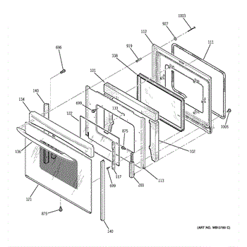 The Oven Door Window Pack Assembly is an OEM part for GE ovens. This assembly includes the glass window and necessary components to ensure a clear view into the oven while maintaining the internal temperature and providing insulation. The glass measures 19" x 12".