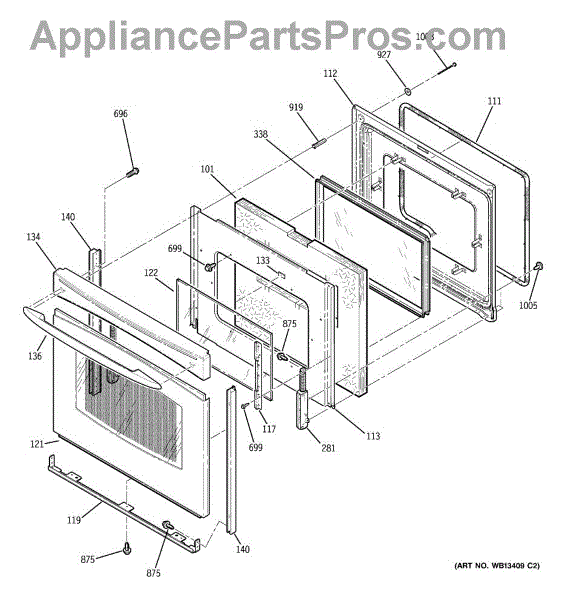 The Oven Window Pack Assembly is an OEM replacement part for GE electric ranges. It provides a safe, transparent barrier for viewing cooking progress inside the oven cavity. The glass measures 17 x 7 inches. Causes for needing replacement include cracks or chips developing over time due to consistent thermal expansion and contraction during cooking cycles. Surface scratches from harsh or abrasive cleaners are another culprit. Symptoms of a faulty window pack include: