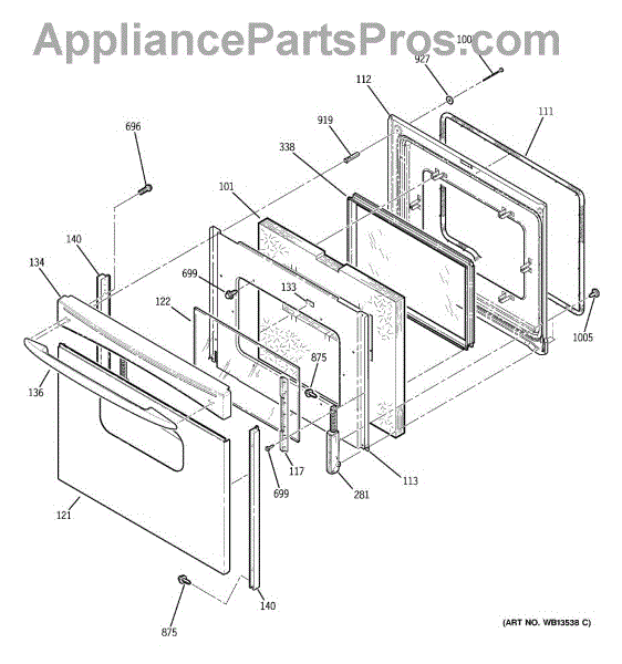The Oven Window Pack Assembly is an OEM replacement part for GE electric ranges. It provides a safe, transparent barrier for viewing cooking progress inside the oven cavity. The glass measures 17 x 7 inches. Causes for needing replacement include cracks or chips developing over time due to consistent thermal expansion and contraction during cooking cycles. Surface scratches from harsh or abrasive cleaners are another culprit. Symptoms of a faulty window pack include: