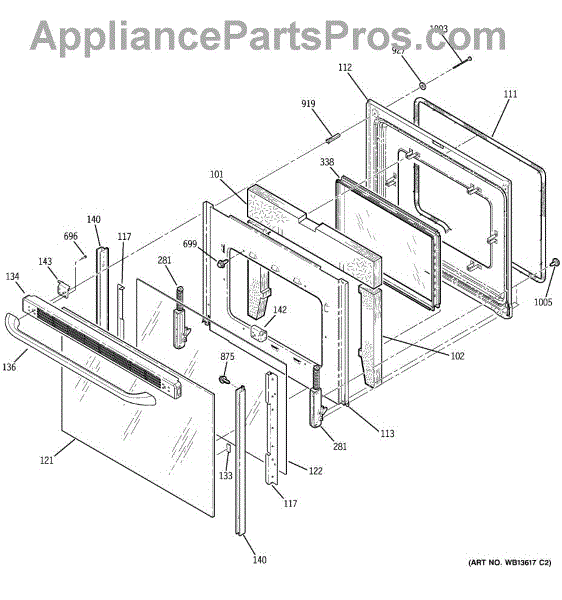 Seals and cushions your oven door to reduce vibration and rattling. Replace when worn to restore proper spacing and eliminate air leaks. Verify fit.