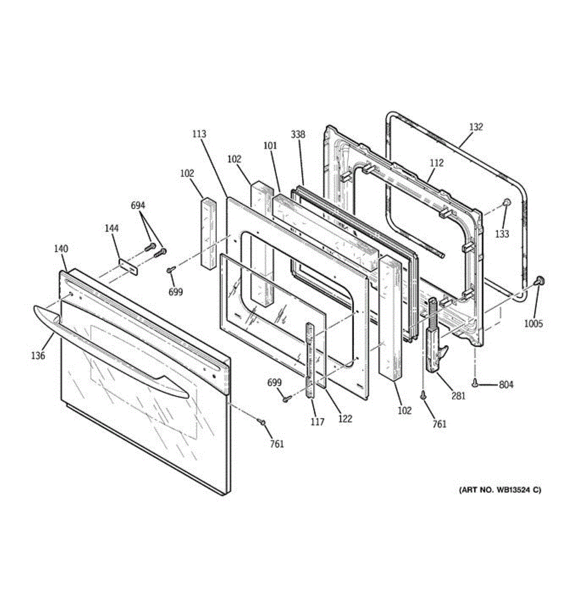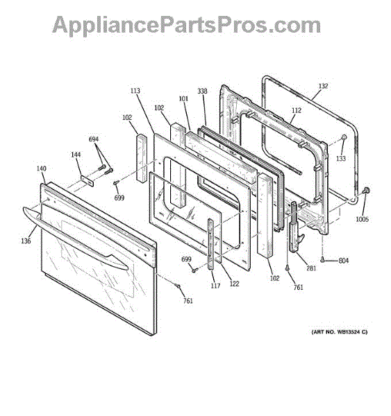 Parts for Ge JCSP38BK5BB: Door Parts