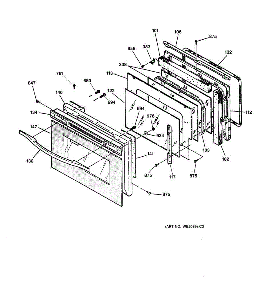 Inner oven door glass installs inside the door cavity behind the outer panel. Replace if shattered, cracked, or broken to restore viewing window function.