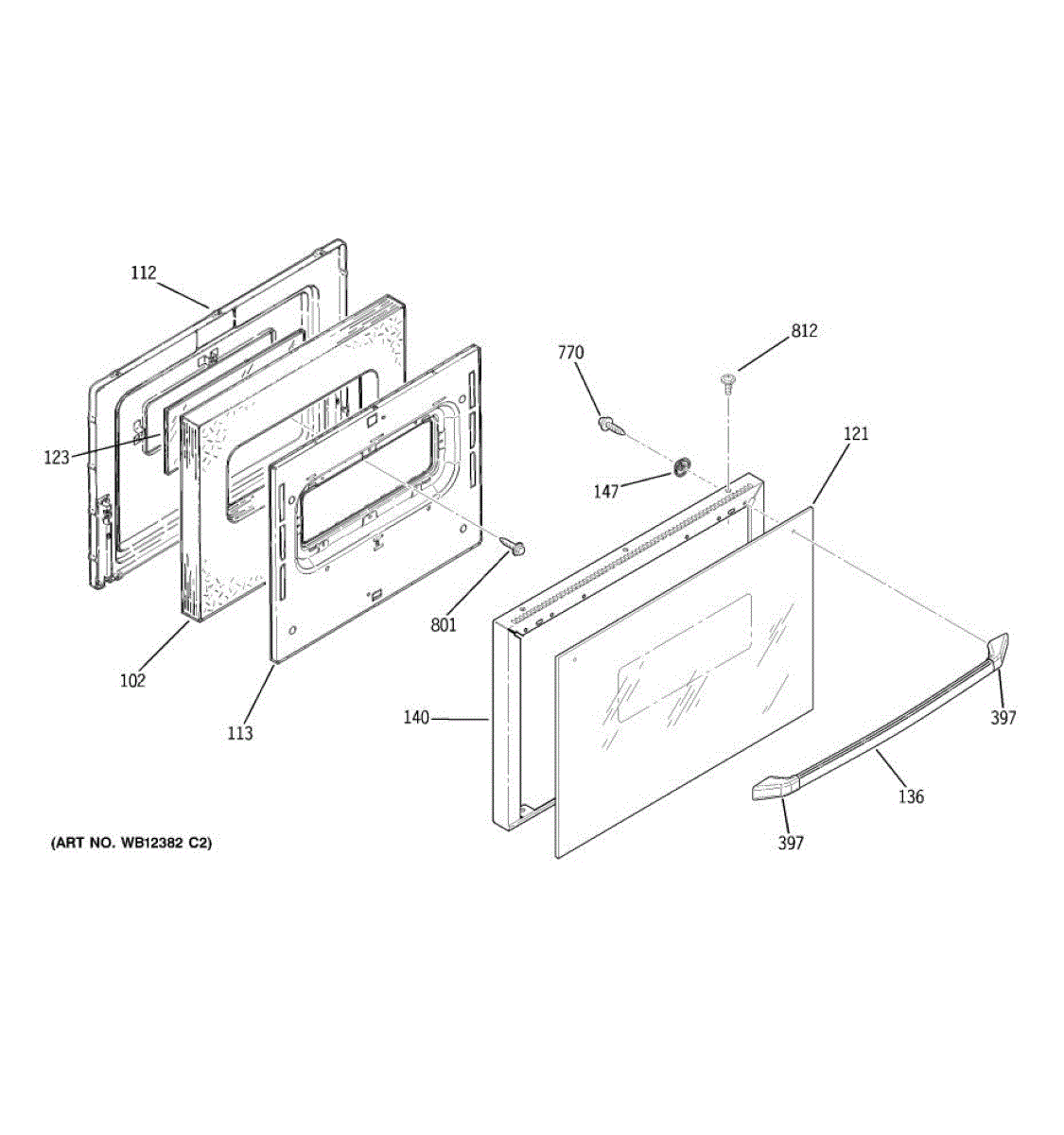 Replacement oven door handle for ranges. Installs on the oven door exterior to provide a grip for opening and closing. Replace if cracked, broken, or worn.